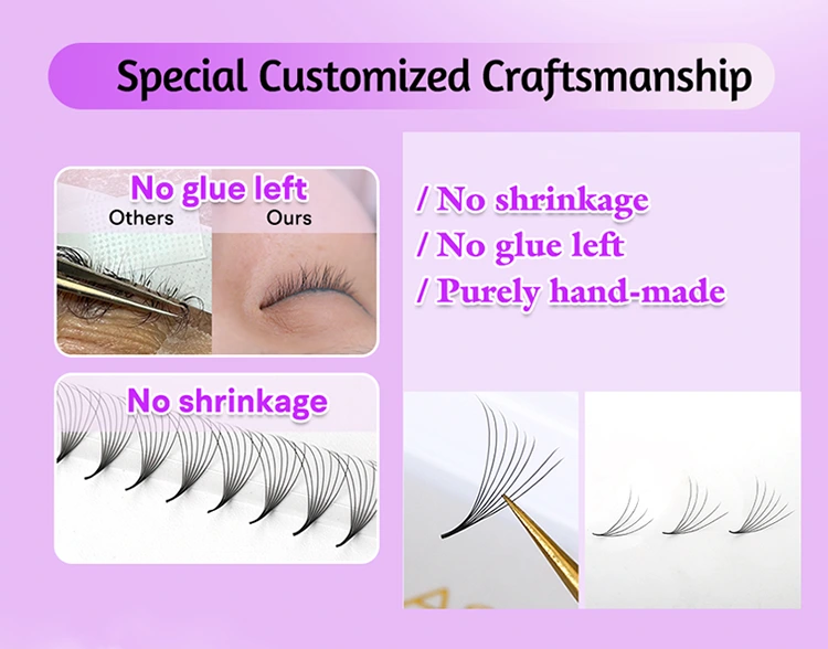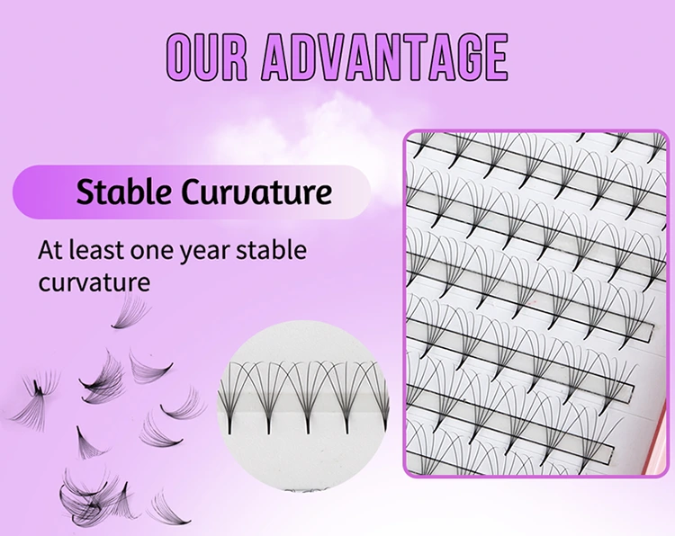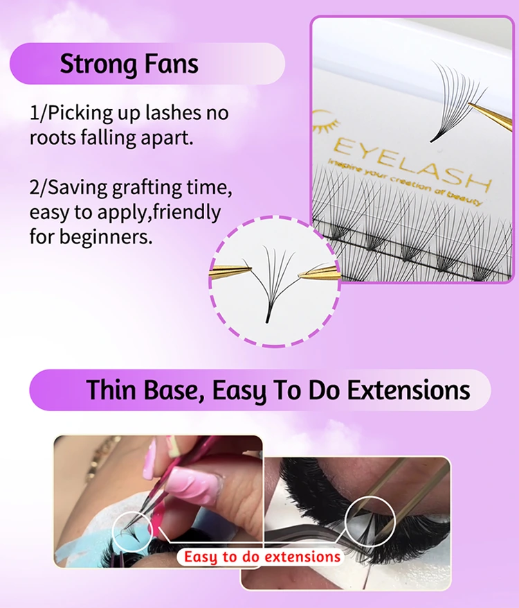 कोरिया-आयातित सामग्री-अल्ट्रा मैट ब्लैकनेस: दक्षिण कोरिया से आयातित सामग्रियों से बना, हमारे पूर्वनिर्मित प्रशंसकों में अल्ट्रा मैट ब्लैक और शानदार कश्मीरी, मखमली और रेशम बनावट हैं। कर्ल प्रतिधारण क्षमता अद्वितीय है, गोंद के साथ बंधन में आसान है, दीर्घकालिक पहनने को सुनिश्चित करता है। यह उच्च गुणवत्ता वाली सामग्री न केवल समग्र उपस्थिति को बढ़ाती है, बल्कि ग्राहकों को उत्कृष्ट आराम भी प्रदान करती है।