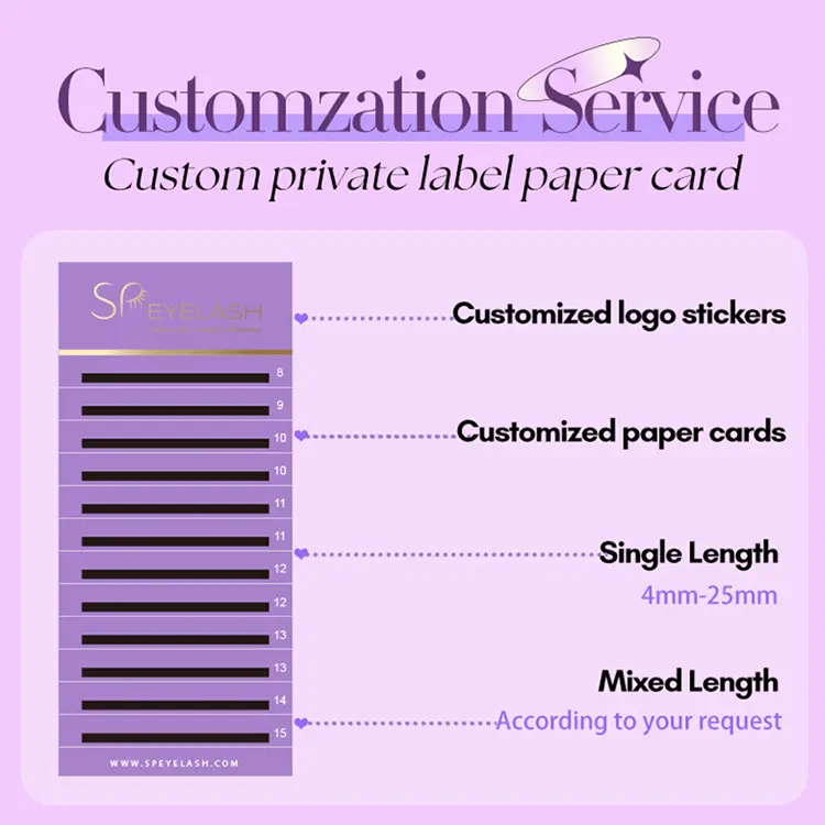 0.03-0.25 मिमी से लेकर मोटाई के आठ स्तरों में उपलब्ध, J/B/C/CC/CC/D/L/M/LM आठ प्रकार के कर्लिंग त्रिज्या संयोजनों के साथ जोड़ा गया है। बायोमिमेटिक बनावट फाइबर के साथ संयुक्त स्पेशल आई वक्र डिजाइन दैनिक नंगे मेकअप से लेकर भारी मेकअप तक पूर्ण दृश्य स्टाइल की जरूरतों को पूरा करता है।