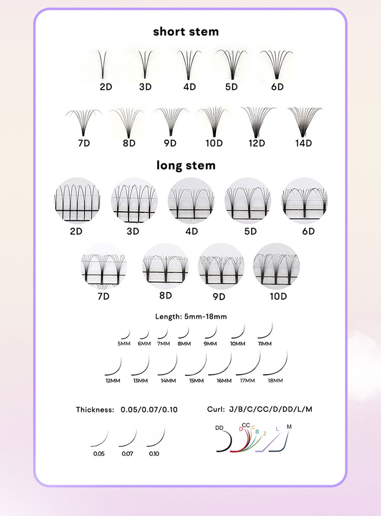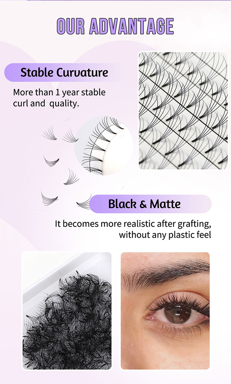 प्रीमैड प्रशंसकों 12 डी शॉर्ट स्टेम लैशेस में एक स्थिर कर्ल होता है जो विभिन्न स्थितियों को सहन कर सकता है, एक बहुत ही यथार्थवादी रूप के लिए प्राकृतिक लैशेस के लचीलेपन से मिलता जुलता है। ये लैश लगभग 12 महीनों तक अपने कर्ल को आसानी से आकार खोने के बिना बनाए रखते हैं, एक विस्तारित अवधि के लिए खूबसूरती से कर्ल लैशेस सुनिश्चित करते हैं।