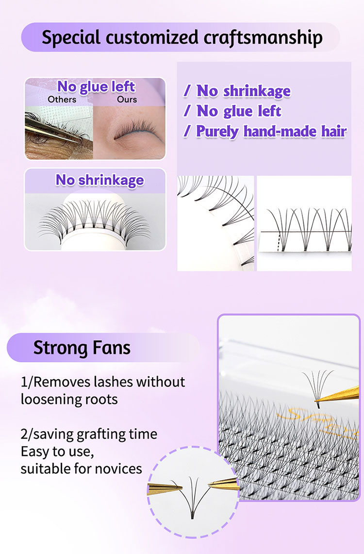 बड़ी मात्रा में प्रीमैड प्रशंसकों 12 डी की थोक खरीद में रुचि रखने वालों के लिए, एसपी बरौनी आपको हमसे संपर्क करने के लिए स्वागत करती है। हम गुणवत्ता को प्राथमिकता देते हैं, और हमारी पेशेवर टीम यहां आपको प्रीमैड प्रशंसकों के आईलैश एक्सटेंशन मिक्स्ड ट्रे के बारे में किसी भी मुद्दे पर सहायता करने के लिए है। हम हर खरीद के साथ आपकी संतुष्टि सुनिश्चित करने के लिए प्रतिबद्ध हैं।