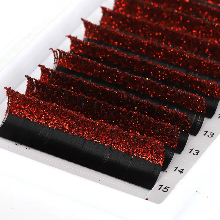 लाल ग्लिटर लैश एक्सटेंशन |