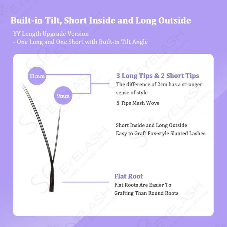 एसपी आइलैश तिरछी फ्लाइंग वाई आईलैश की अभिनव फॉक्स आई डिज़ाइन 5-पॉइंट मेष बुनाई तकनीक का उपयोग करती है, स्वाभाविक रूप से 3 लंबी और 2 छोटी पलकों के वितरण के माध्यम से आंख की पूंछ को बढ़ाती है। 0.07 मिमी अल्ट्रा-फाइन फाइबर बेस भारी दिखने के बिना शराबीपन सुनिश्चित करता है, 8-15 मिमी लंबाई के विकल्प प्रदान करता है, जो कि सी/डी/जे/एम/एल कर्ल के साथ नंगे से भारी मेकअप तक अलग-अलग जरूरतों को पूरा करने के लिए जोड़ा जाता है। अद्वितीय सिल्वर फ़ॉइल बेस डिज़ाइन बालों को हटाने को अधिक सुविधाजनक बनाता है, और मिलान कार्ड स्पष्ट रूप से मापदंडों को इंगित करता है, जिससे बरौनी तकनीशियनों के संचालन की दक्षता में बहुत सुधार होता है।