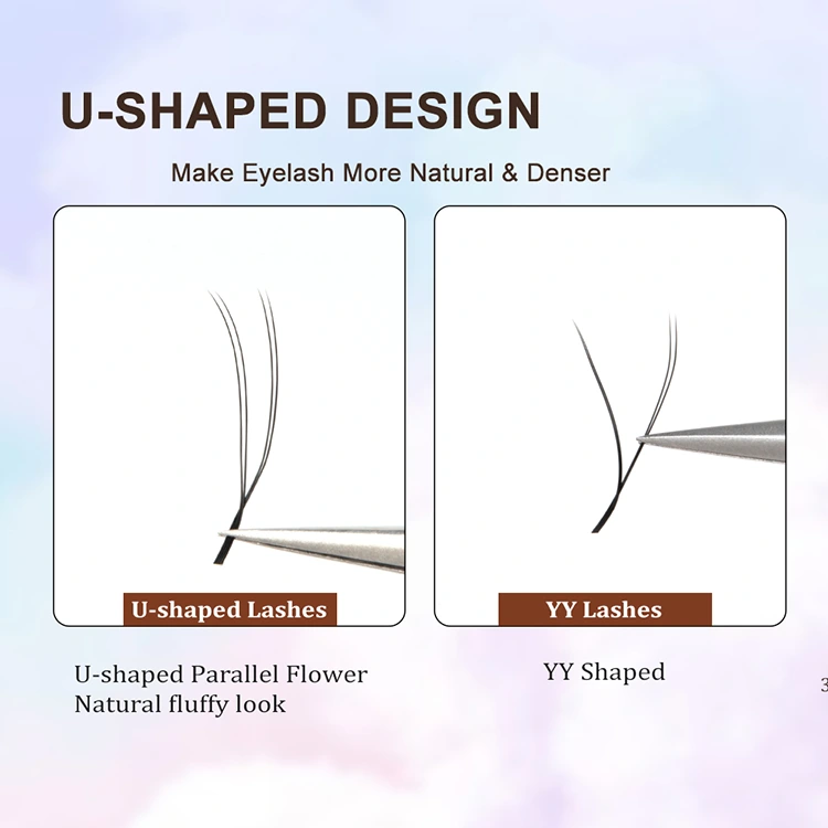 यू-आकार का डबल पॉइंटेड डिज़ाइन चिपकने वाले संपर्क बिंदुओं को बढ़ाता है, दृढ़ता और स्थायित्व को बढ़ाता है, और पारंपरिक वाई-आकार की पलकों की तुलना में अधिक फायदे हैं।